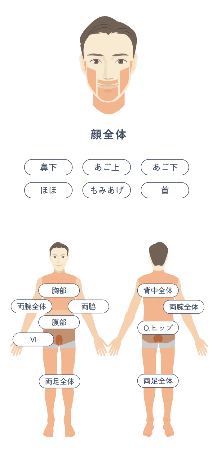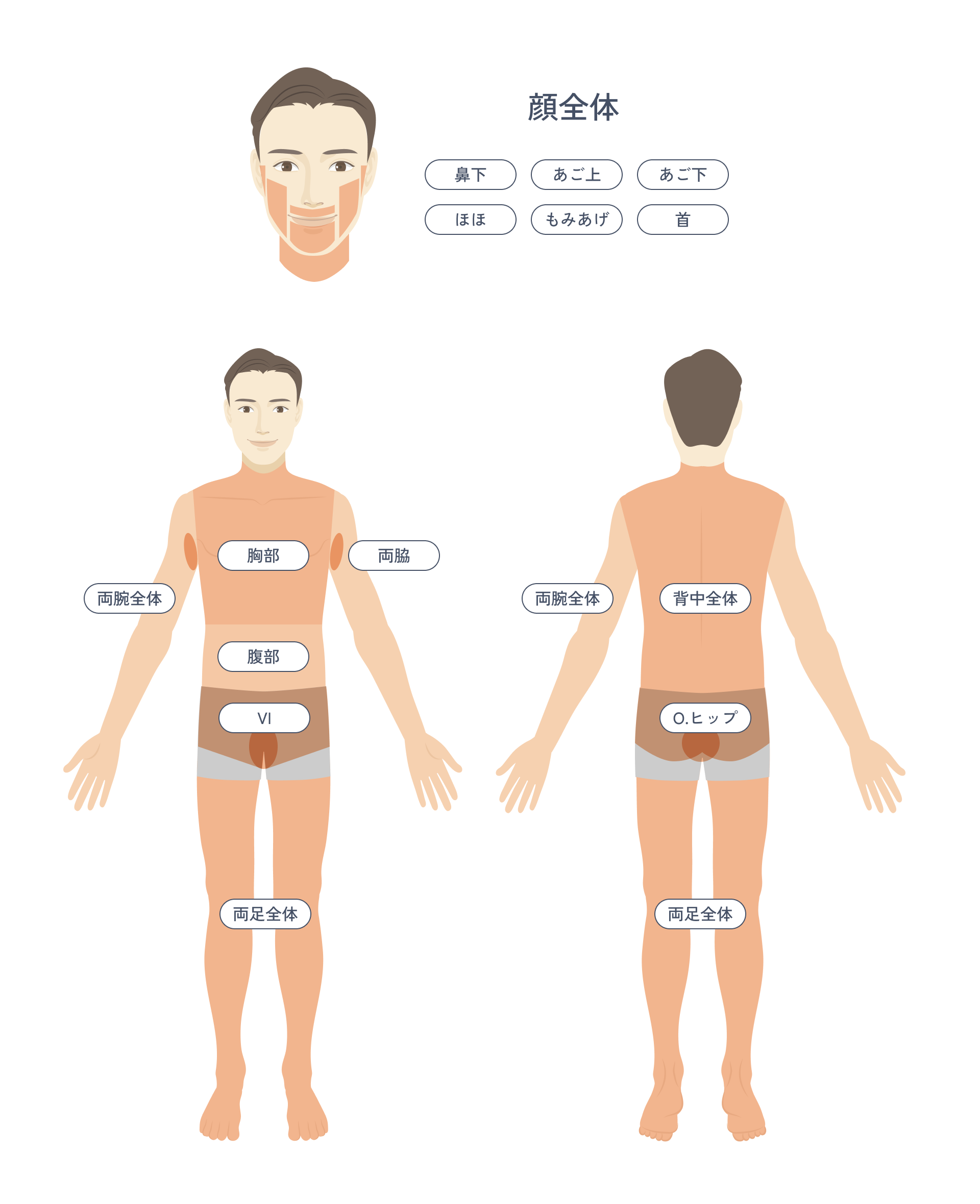 顔全体(ヒゲ脱毛)3000円、両足全体5000円など地域最安値を実現!